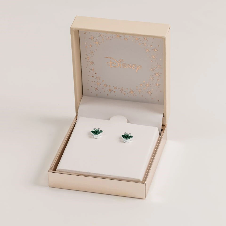Very sweet 7mm Minnie Mouse stud earrings with green crystals, perfect to give for a May birthday gift. Finished with sterling silver bows and butterfly backs and presented in official Disney packaging.