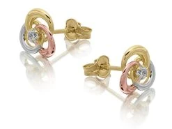 9ct Gold Three Colour Cubic Zirconia Knot Stud Earrings – G4612