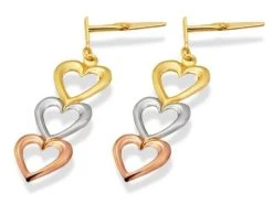 9ct Three Colour Gold Triple Heart Andralok Earrings – 25mm Drop – G3905