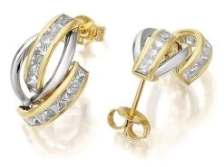 9ct Two Colour Gold Cubic Zirconia Stud Earrings – 15mm – EXCLUSIVE – G2744