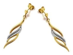 9ct Gold Two Colour Drop Earrings – Total 30mm Drop – EXCLUSIVE – G1856