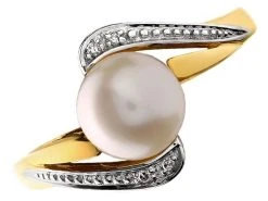 9ct Gold Two Colour Freshwater Cultured Pearl And Diamond Ring – R0926