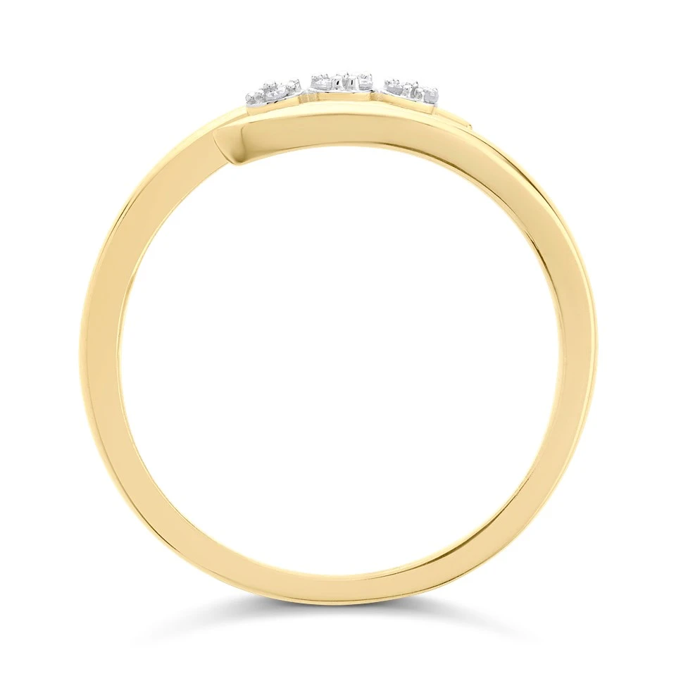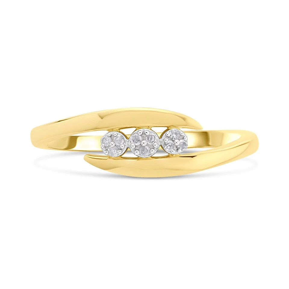 Featuring three precious dimonds set in a trilogy design (2pts each), this 6mm wide gold plated sterling silver crossover ring from the My Diamonds collection is a pretty addition to any jewellery box. 6pts total diamond weight.