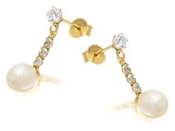 9ct Gold Cubic Zirconia And Pearl Drop Earrings – 22mm Drop – G3103