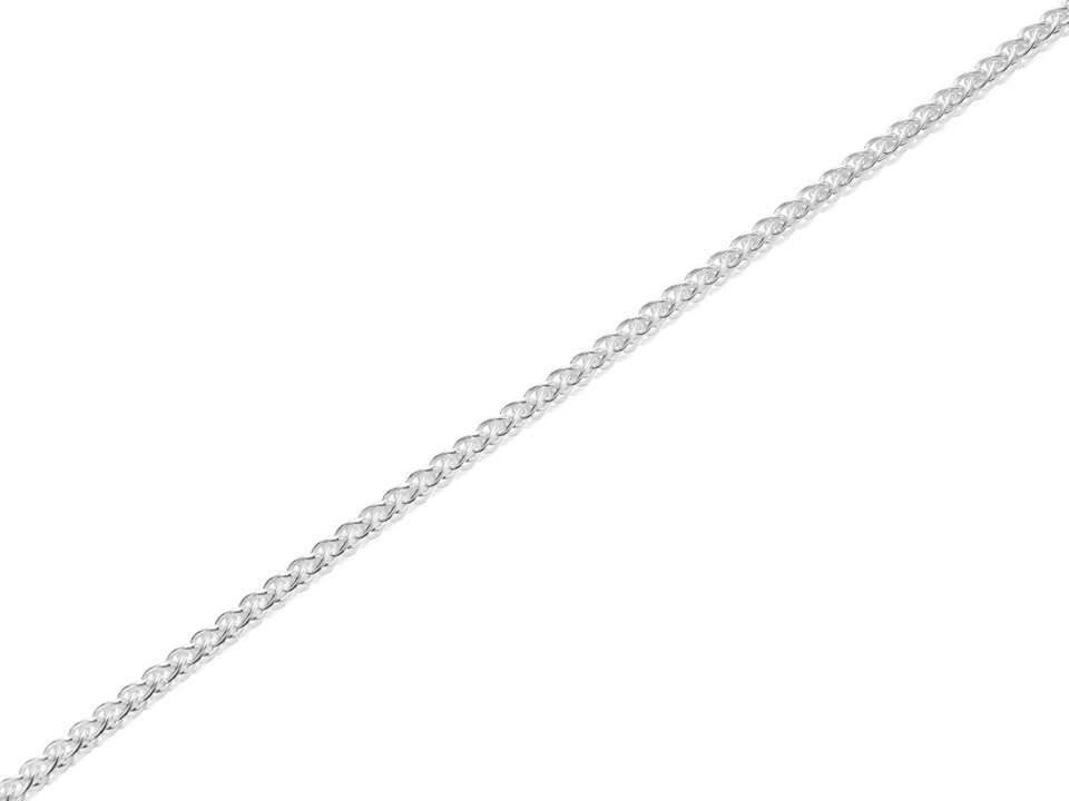 A sterling silver 2mm wide spiga chain in a 18in/46.5cm length, suitable for many of our silver pendants.
