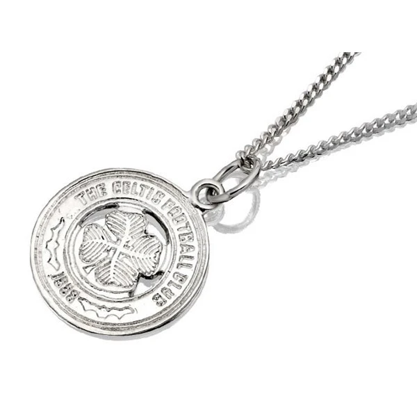 A round, silver 15mm Celtic crest pendant strung from an 18in/45.5cm flat link curb chain. A great gift for a Celtic FC fan, presented in an embossed gift box. Officially licensed product.