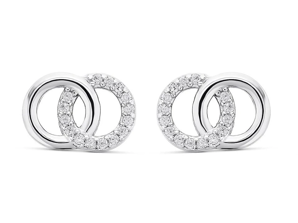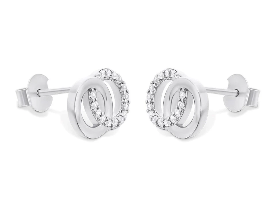 Add a touch of sparkle with these sterling silver circle stud earrings. Featuring plain and stone set interlocking circles, these earrings measure 9 x 13mm and are finished with a butterfly fitting. Perfect to wear at anytime.