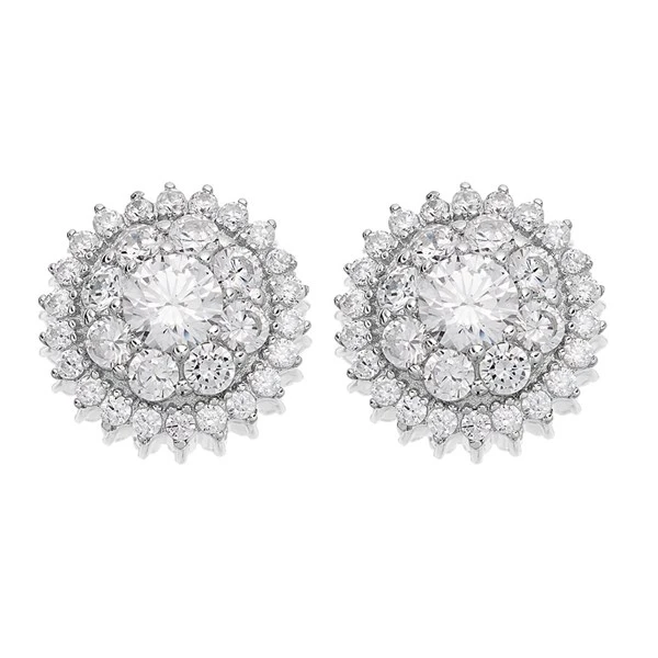 Impressive, 10mm tiered cluster earrings, set with cubic zirconias – these are full of sparkle and very glamorous.