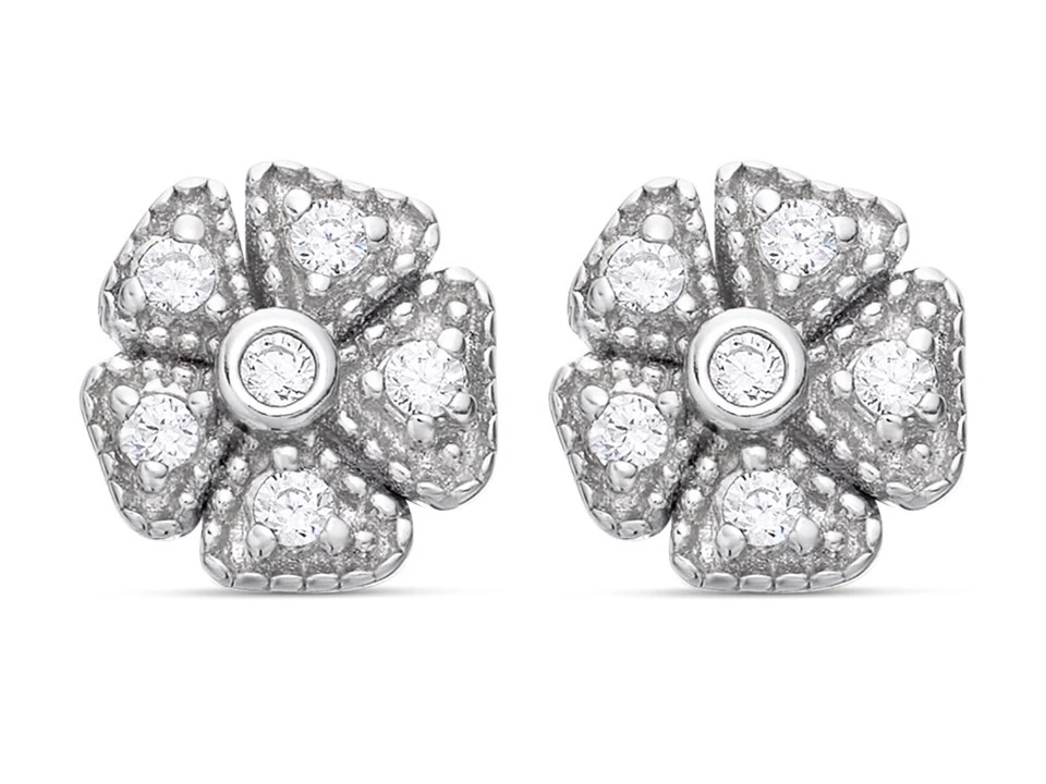 Cubic zirconias feature on the five petals and the centre of this 7mm flower – a sparkle to make them look their best, but not too much.