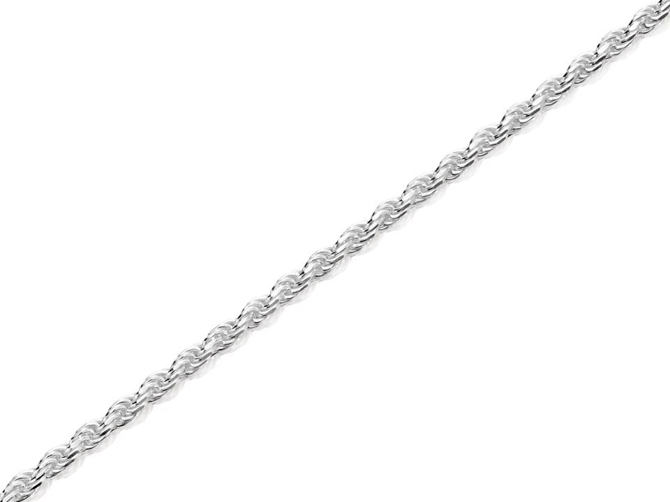 A very pretty sterling silver rope chain that is cleverly diamond cut to ensure it catches the light and sparkles – 16″/40.5cm long.