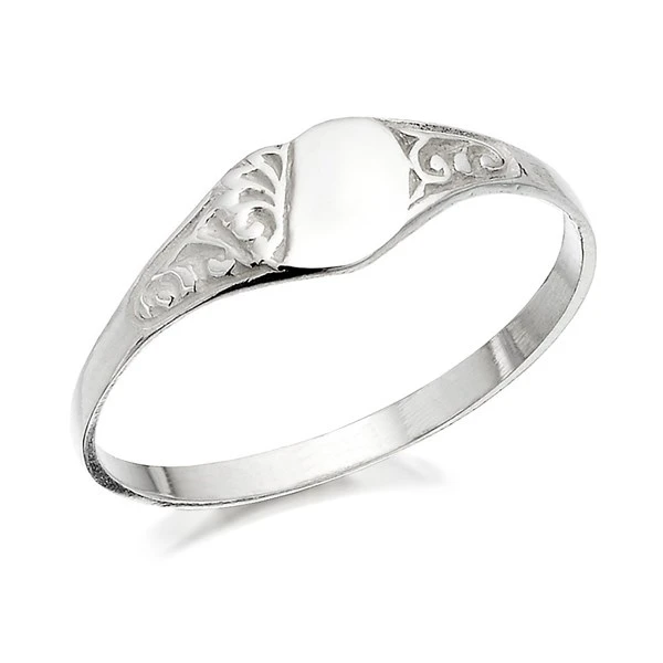 A charming and dainty, part engraved heart signet ring. Would make the perfect little finger ring or for young jewellery wearers perhaps? Made in the UK.