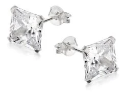 Silver Square Cubic Zirconia Stud Earrings – 8mm – F0320