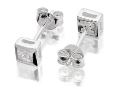 Silver Square Cubic Zirconia Stud Earrings – 5mm – F0456