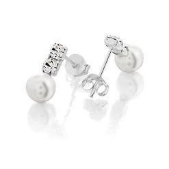 Silver Simulated Pearl And Crystal Stud Earrings – 13mm – F11023