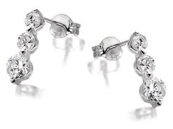 Silver Trilogy Cubic Zirconia Drop Earrings – 14mm Drop – F1155