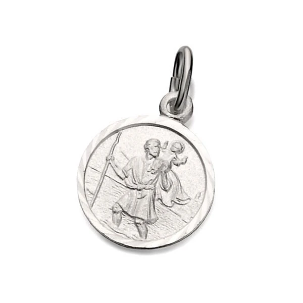 A traditional 12mm sterling silver St Christopher with one fully featured side, the other plain. Can be attached to a keyring, charm bracelet, or select a chain of your choice from our extensive range.