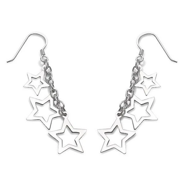 Three sterling silver stars; small, medium and large together create the 40mm drop, strung from comfortable hook wires.