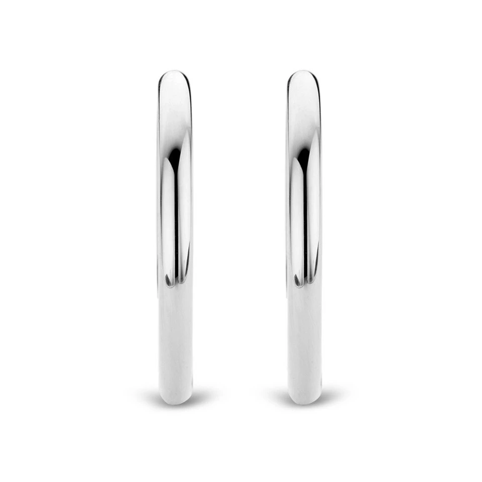 These classic TI SENTO – Milano hoop earrings are made from rhodium plated sterling silver to give added lustre and shine. The 30 x 3mm earrings are hinged with a traditional hoop fitting.