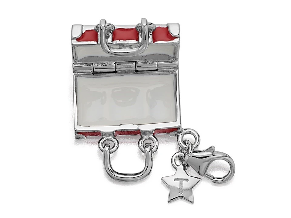 A Tingle red suitcase charm perfect for those who love travelling. Measuring 16 x 11 x 6mm, the suitcase actually opens up to reveal a small space for a memento perhaps. With free moving handles, sterling silver throughout and finished with a secure karab clasp. Start a Tingle charm collection by adding your Tingle charms to any charm bracelet, keyring, necklace, phone or handbag.