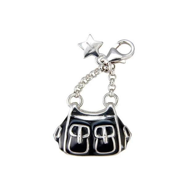 A fun Tingle black enamel handbag charm with a free-moving chain strap. Measures 19 x 13mm, sterling silver throughout and finished with a secure karab clasp. Start a Tingle charm collection by adding your Tingle charms to any charm bracelet, keyring, necklace, phone or handbag.
