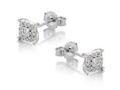9ct White Gold Cluster Stud Earrings – 10pts Per Pair – D5463