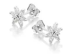 9ct White Gold Cubic Zirconia Daisy Stud Earrings – 7mm – G3225