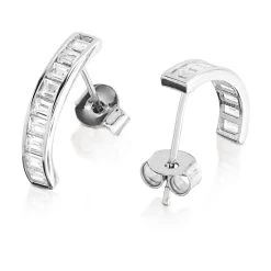 9ct White Gold Cubic Zirconia Half Hoop Earrings – 12mm – G2992