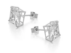 9ct White Gold Princess Cut Cubic Zirconia Stud Earrings – 7mm – G3242
