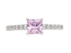9ct White Gold Pink Princess Cut Cubic Zirconia Ring – R6556