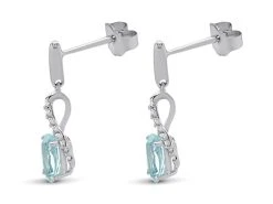 9ct White Gold Blue Topaz And Diamond Drop Earrings – 5pts Per Pair – D9666